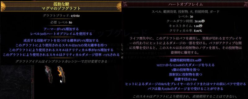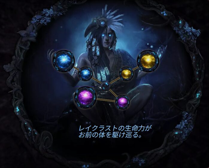 - 闇に浮かぶ人影(Unlight Silhouette): すべてのスペルに多大なライフコストを課す代わりに、消費したライフ量に応じて追加の混沌ダメージを与えるようになります。