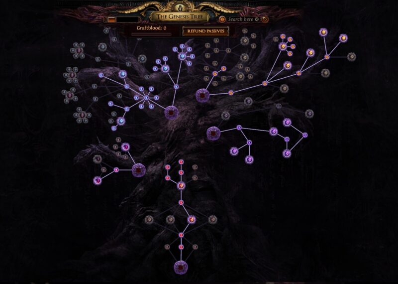 - 活性化: 創生の樹は成長のために「グラフトブラッド」の供給を常に必要とし、この血はブリーチモンスターを倒すことで得られ、プレイヤーのグラフトが自動的に回収します。この血を樹に供給すると、割り当てられたパッシブスキルが稼働を始めます。