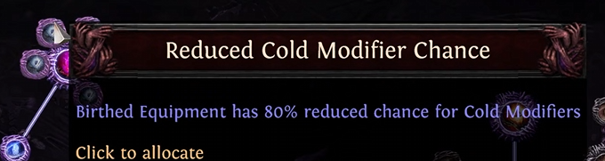 - レア装備品の生成: 樹の最大のセクションはレアの装備品を誕生させるために使われます。プレイヤーは、誕生するアイテムのモッドや種類に対して、靴をターゲットしたり、特定の能力値条件やモッドの確率(例:スピードモッドの確率増加、冷気モッドの確率減少)を設定したりして、かなり自由にコントロールできます。