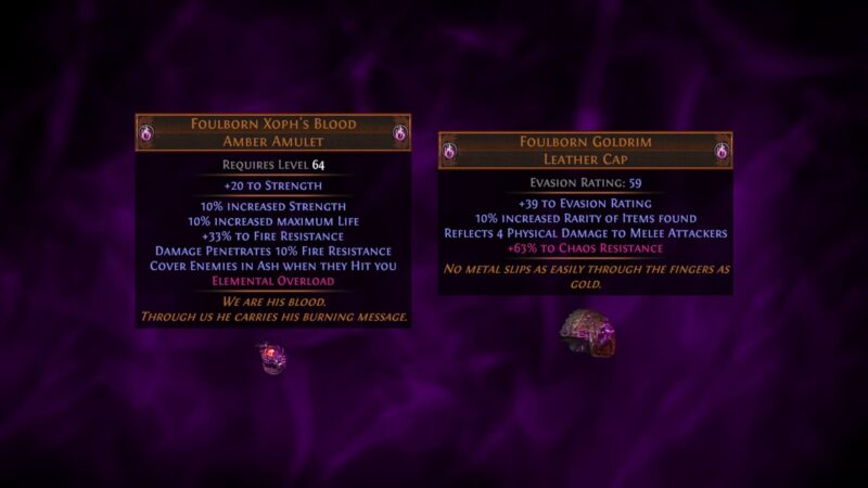 - ファウルボーンの高貴なオーブ: これは通常の高貴なオーブと同じように機能しますが、高ティアのモッドの追加を保証するため、通常のオーブが追加する可能性のある低ティアモッドの大部分を除外できます。