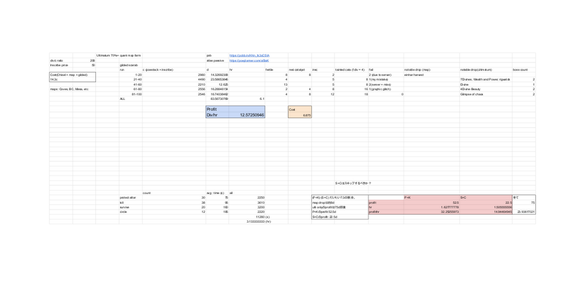 時給として12Divine程度であり、マップから落ちた他の報酬を引いても時給は11Divineほどもあります。